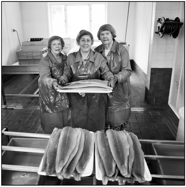 June Gee, Jane Hook, Kitty Gretton, staff at Springs Smoked Salmon